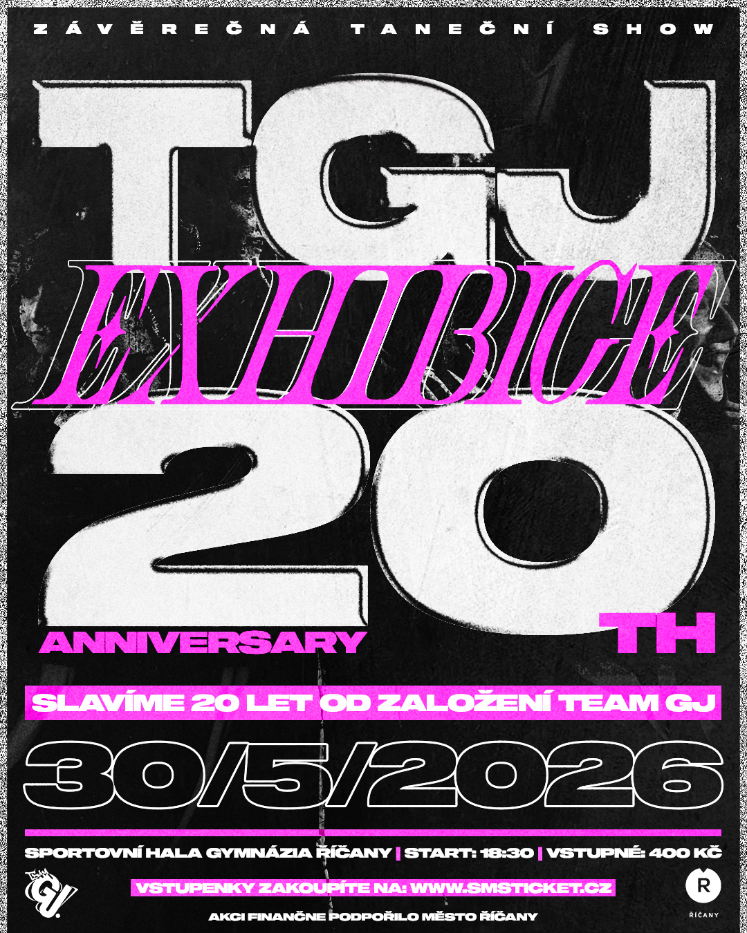 Zveme Vás na naší výroční Exhibici, která bude letos naprosto výjimečná. Nejenže uzavřeme další úspěšnou taneční sezónu, ale společně oslavíme neuvěřitelných 20 let od založení TEAMGJ! 🎂🥳 Doražte s námi slavit 30. 5. 2026 do Sportovní haly Gymnázia Říčany!
